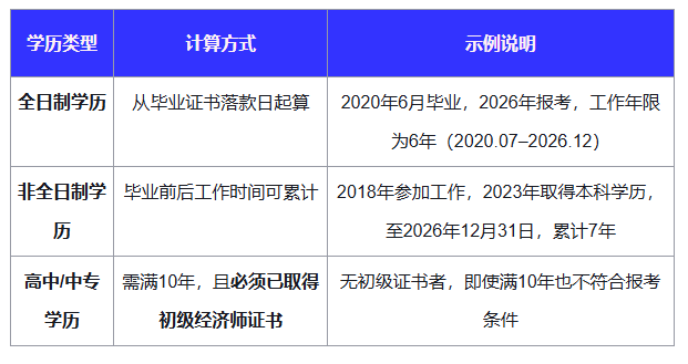 注:工作年限截止日期统一为2026年12月31日,非报名日或考试日。