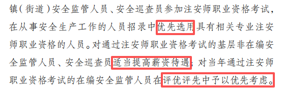 薪资与评优:基层非在编安全监管人员通过考试可提高薪资;在编人员通过考试优先评优评先。