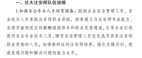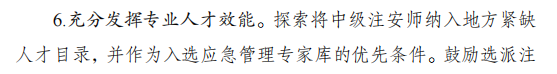 人才认可:探索将中级注安师纳入地方紧缺人才目录,优先入选应急管理专家库。