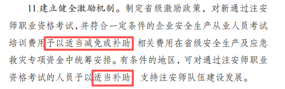 费用补助:省级对符合条件的企业从业人员给予注安师考试培训费用减免或补助,地方可配套补助。