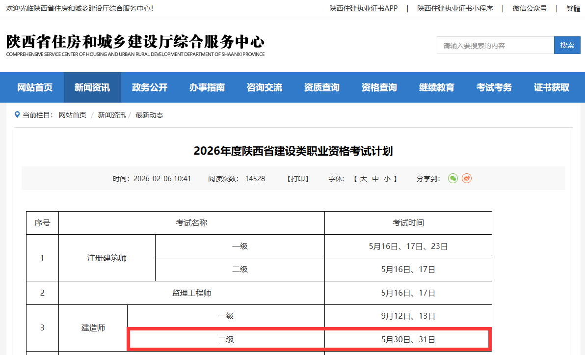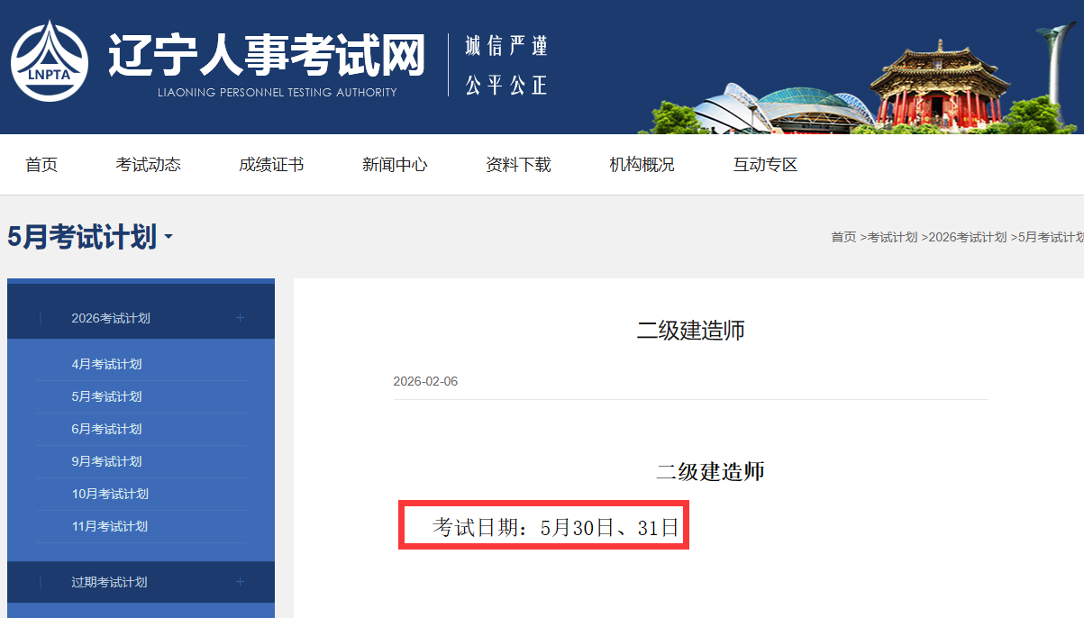 目前辽宁,陕西已经公布2026年二建考试时间。