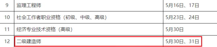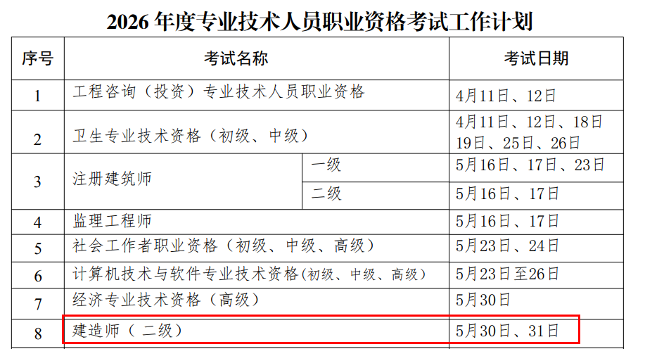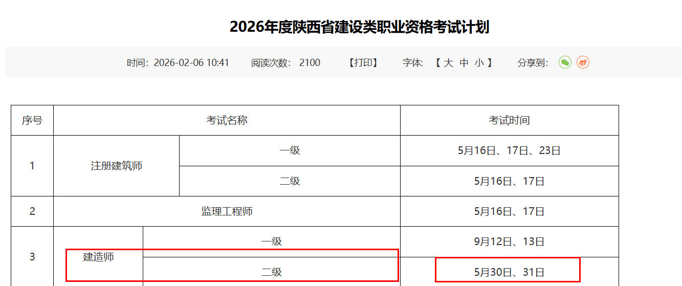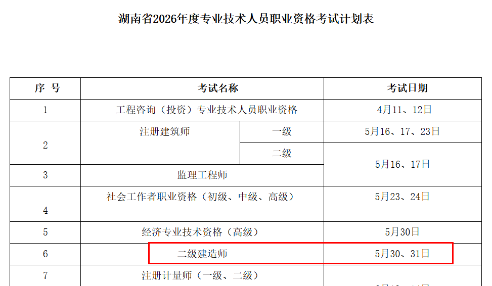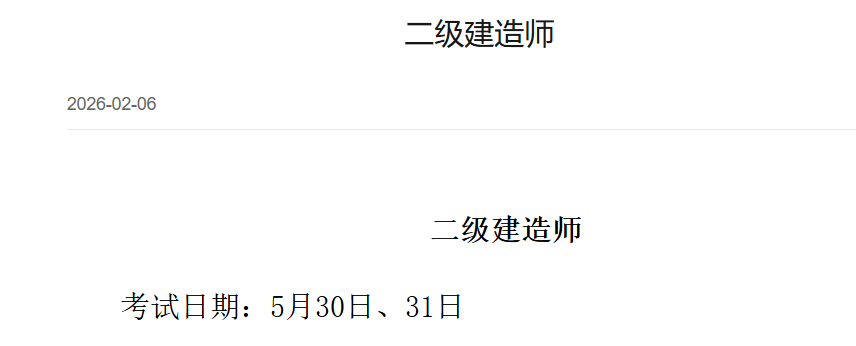 和青海目前已经公布26年二建考试时间都是5月30日、31日。