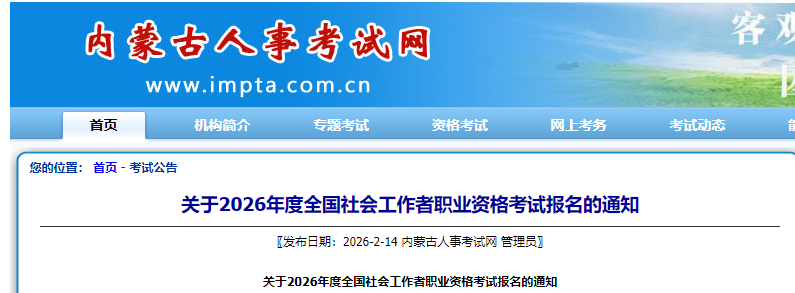 此前,内蒙古率先公布2026社工考试报名时间,一起来看!
