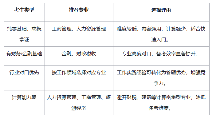 三、零基础/在职考生专业选择策略