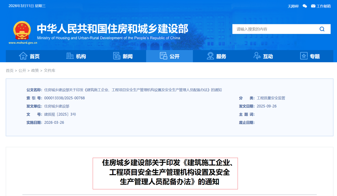 根据住房城乡建设部最新印发的《建筑施工企业、工程项目安全生产管理机构设置及安全生产管理人员配备办法》,自2026年3月26日起,企业安全总监和项目安全总监都明确要求必须持注册安全工程师证书,一起来看重点内容!