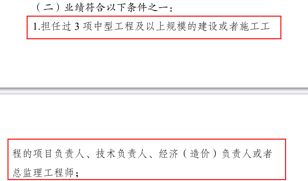 新政对普通专家业绩明确二选一要求,第一条直接锁定管理岗位:担任过3项中型及以上工程的项目负责人、技术负责人、经济(造价)负责人或总监理工程师。