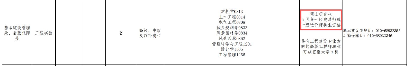 近日,中央民族大学基本建设管理处、后勤保障处招聘2人,要求具备一级建造师或一级造价师执业资格。岗位属于事业编制,还帮忙解决一家人的北京户口~