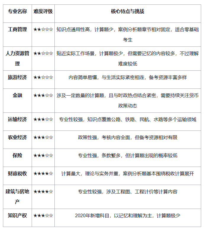 (三)权衡考试难度原则客观评估自己的学习能力、专业背景以及可投入的时间和精力。如果您是零基础跨考,且希望尽快通过考试,那么工商管理、人力资源管理或旅游经济可能是更为务实的选择。如果您具备扎实的财税或金融基础,挑战财政税收或金融专业则更具优势。