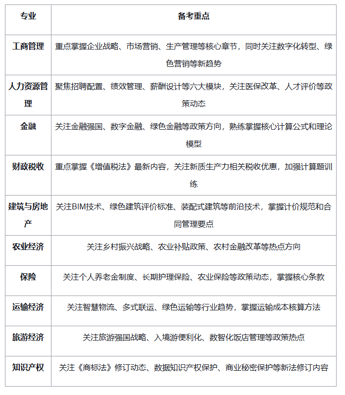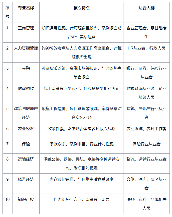 (一)立足本职工作原则如果您目前正在某个行业工作,那么优先选择与该行业对应的专业。例如,HR从业者选择人力资源管理专业,财税人员选择财政税收专业。您的工作经验是备考过程中的宝贵财富,能够帮助您更好地理解案例和知识点,实现“工作助力备考,考证促进工作”的良性循环。
