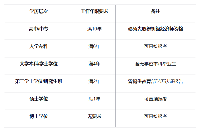 根据人社部《经济专业技术资格规定》(人社部规〔2020〕1号),报考中级经济师需满足以下条件之一(工作年限计算截止2026年12月31日):