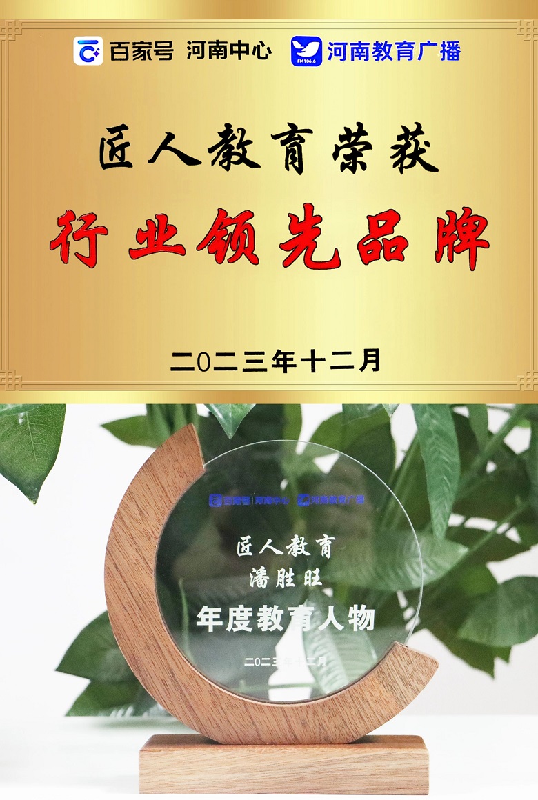 聚焦豫教大行业,寻找教育领旗人。近日,2023“致敬豫教匠心"年度品牌颁奖盛典在郑州隆重举行,匠人教育凭借强大的品牌影响力、优质的师资力量、完善的课程体系、创新的教学方法、多元化的授课方式、成熟的技术平台等在众多教育品牌中脱颖而出,荣获“行业领先品牌”奖项。同时,集团董事长潘胜旺荣获“年度教育人物”这一殊荣!