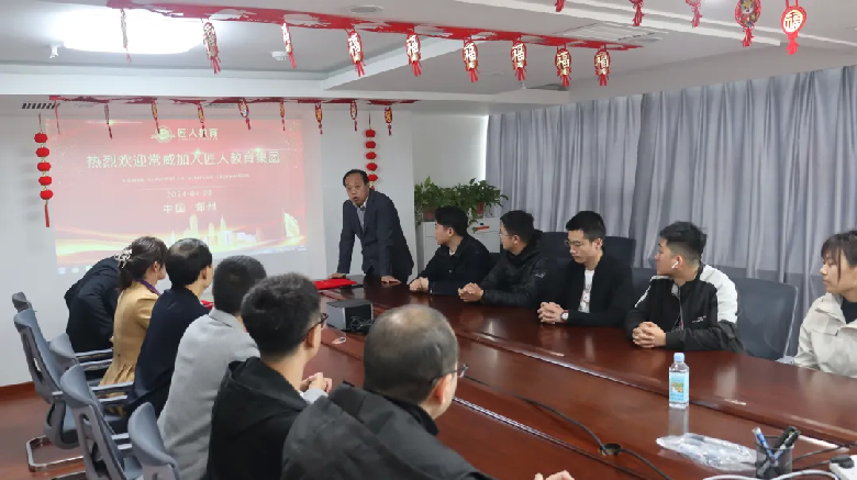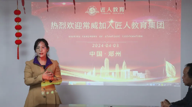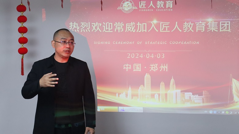 仪式上,常威老师正式接受聘任,成为匠人教育集团国际事业部的负责人。董事长潘胜旺对常威老师的加入表示热烈的欢迎。同时,对国际交流事业部的成立表示祝贺。他强调,国际交流事业部的成立旨在响应国家对国际化人才培养的号召,提升我司国际交流合作水平,为更多学子搭建国际交流学习的渠道。董事长潘胜旺对国际事业部的工作寄予厚望,并希望事业部能够努力拓宽国际交流合作领域,进一步发挥国际交流合作平台效能。