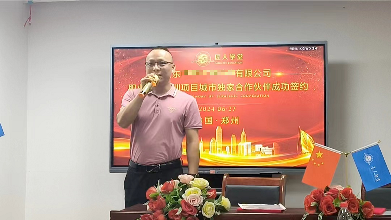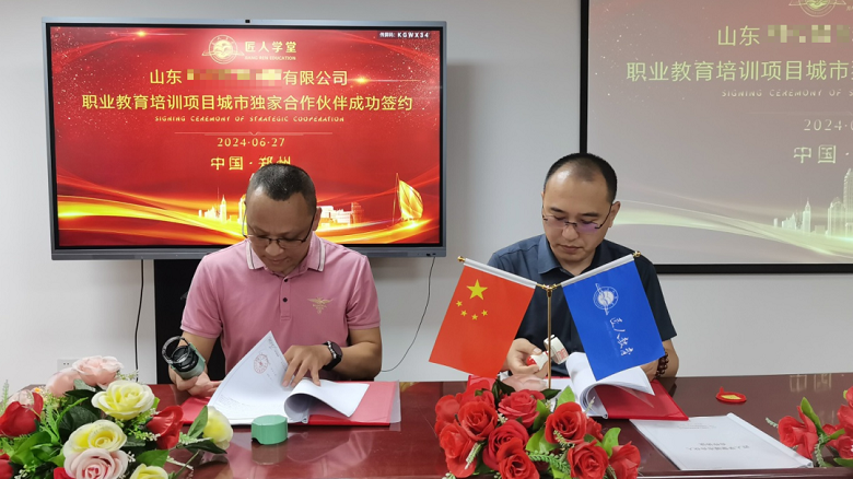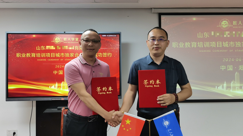 6月27日上午,匠人教育集团与山东某公司职业教育培训项目城市合作伙伴签约仪式在郑州匠人教育集团总部隆重举办!