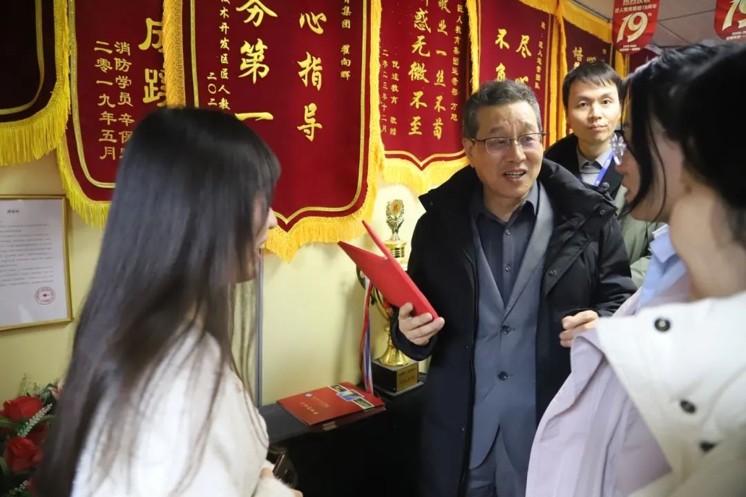 在品牌事业部吕老师的讲解下,闫振伟总裁一行参观了集团的发展历程以及匠人工坊的教学设施和培训环境,对匠人教育集团悠久的办学历史、先进的实训设备、完善的教学体系等给予了高度评价。