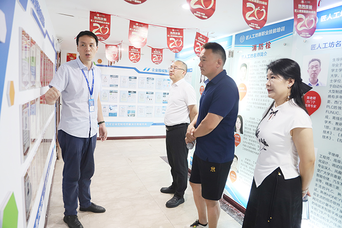 在匠人教育集团董事长潘胜旺等领导的陪同下,杨副处长一行先后走访了匠人集团总部和匠人工坊实训基地。品牌事业部吕老师进行了细致讲解,让杨副处长一行系统了解到匠人集团 20 年深耕职业教育领域的发展历程。对于集团在高质量就业培训指导方面取得的成果,杨副处长一行给予了高度认可。