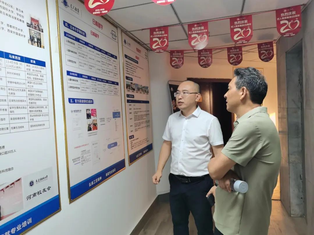7 月 31 日下午,河南省委政策研究室李同昌主任莅临匠人教育集团总部考察指导。匠人教育集团董事长潘胜旺热情接待。