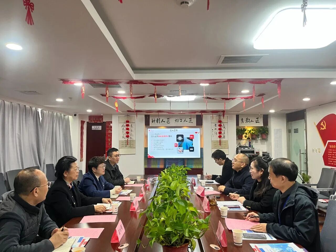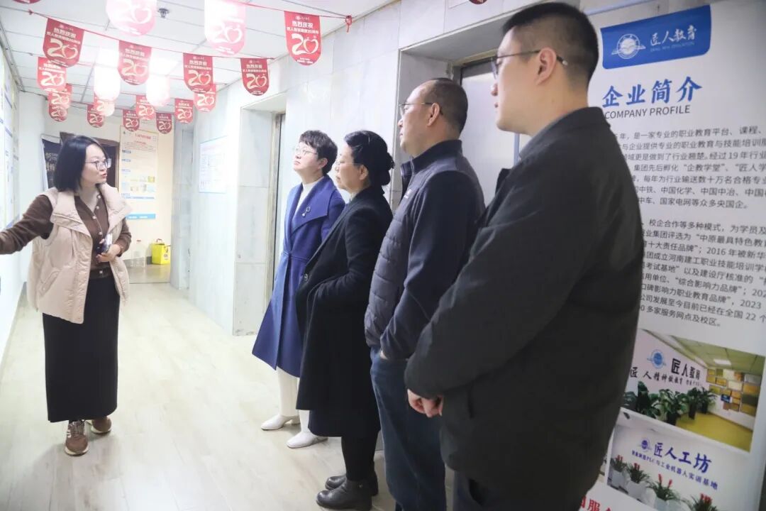 11月10日,淮海人才集团副总经理李勤奋、招聘服务部部长潘登、中国矿业大学教授史丽萍、副教授苗长新等领导一行到访匠人教育集团进行考察指导,双方围绕深化产教融合、促进社会就业与企业发展等核心议题展开深度洽谈交流。匠人教育集团董事长潘胜旺、全国校区运营总监马志杰等领导陪同参观并参与座谈。