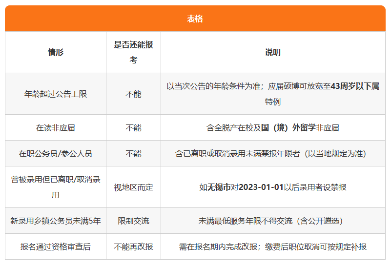 地方明确年限限制:部分地区对曾被录用为公务员(含参公)人员设置年限禁报。例如,无锡市明确:2023年1月1日以后已办理录用审批(备案)手续的人员(含已离职或取消录用)不得再次报考。