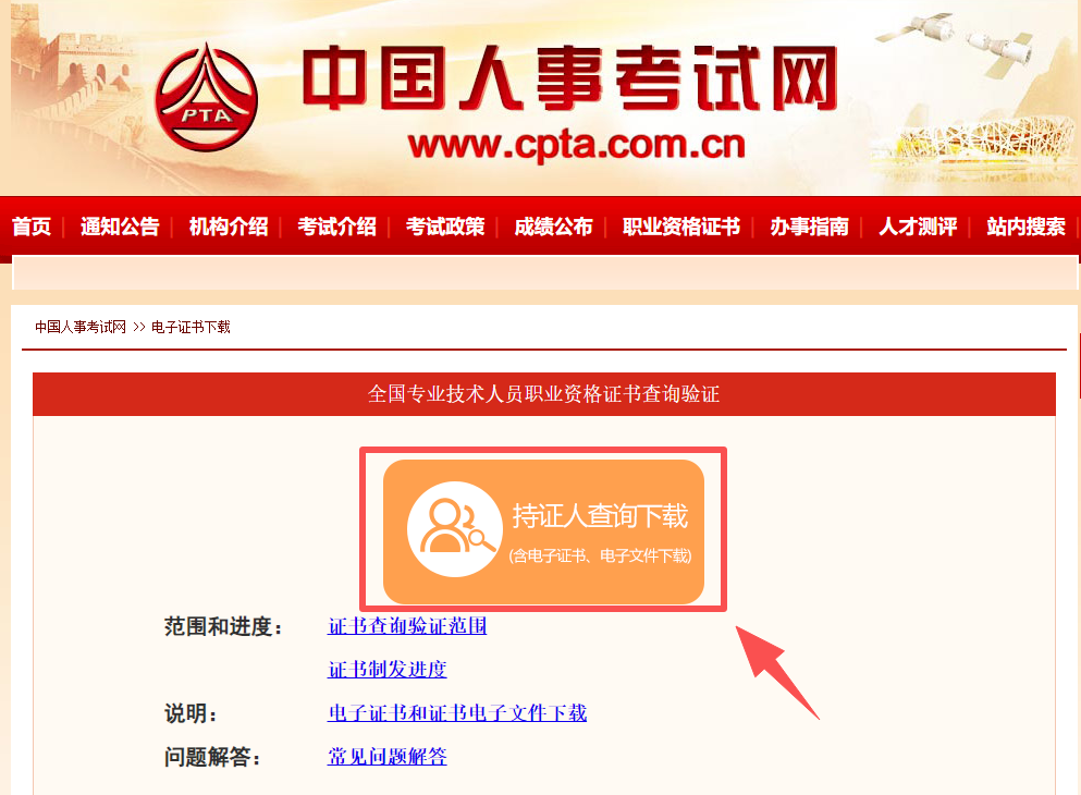 ②在打开页面点【持证人查询下载(含电子证书、电子文件下载)】。进入登录页面。