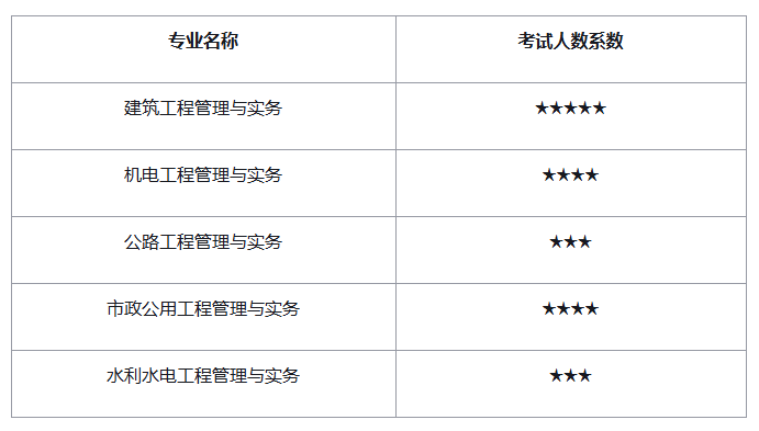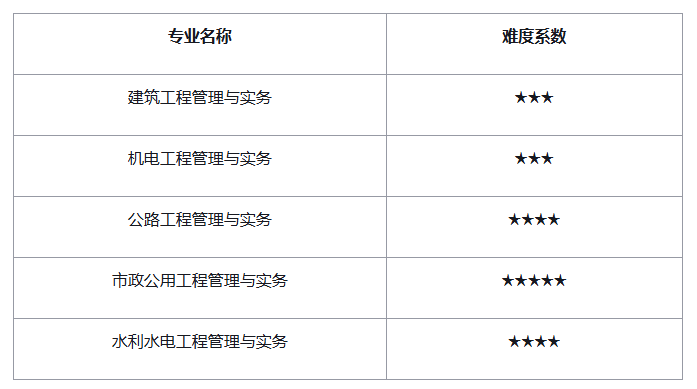 专业考试为《专业工程管理与实务》一个科目。该科目分为10个专业,即:建筑工程、公路工程、铁路工程、民航机场工程、港口与航道工程、水利水电工程、市政公用工程、通信与广电工程、矿业工程、机电工程。