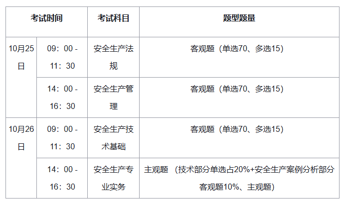 基于此规律推测,2026年中级注册安全工程师考试预计将在10月24日、25日举行。四科考试将分两天进行。当然,最终的准确日期还需等待2026年1月人社部官网的统一公告,届时本站小编将及时更新,请大家保持关注。