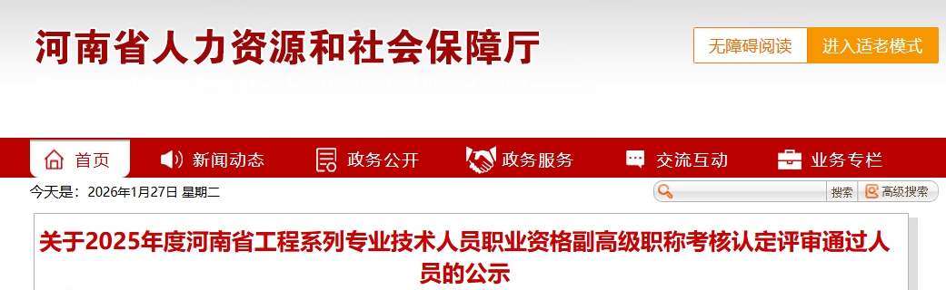 附件:2025年度河南省工程系列专业技术人员职业资格副高级职称考核认定评审通过人员名单(https://hrss.henan.gov.cn/2026/01-13/3309029.html)