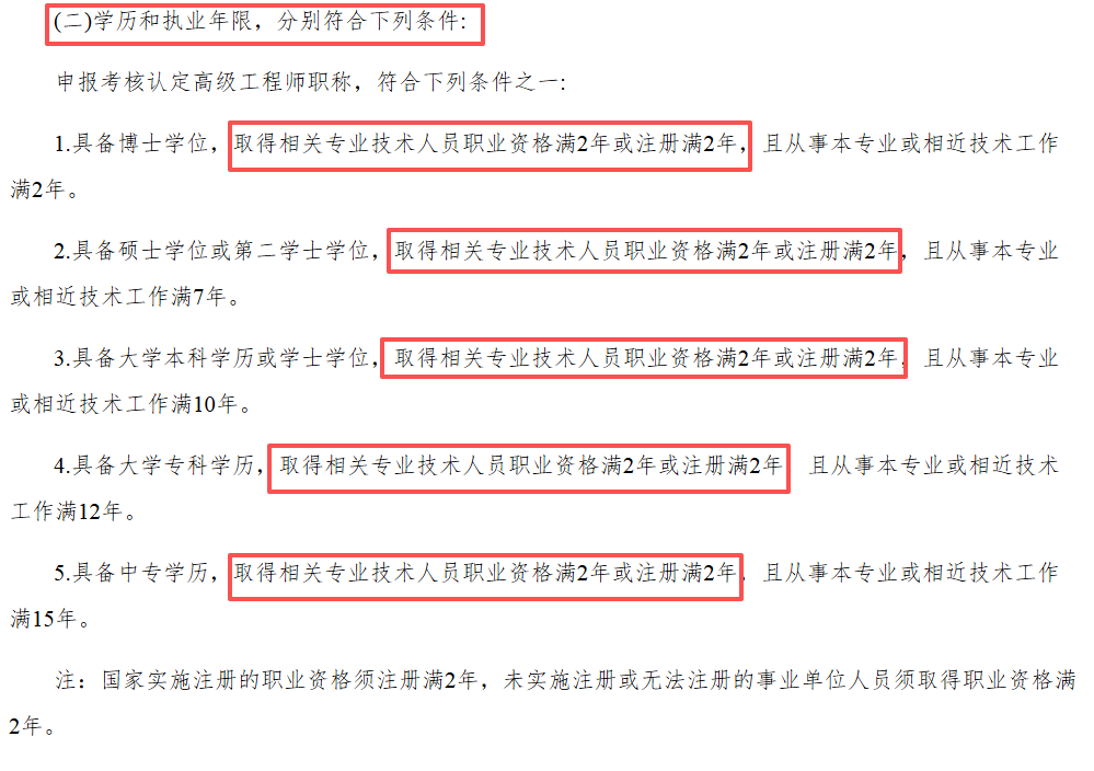 取得相关专业技术人员职业资格满2年或注册满2年,并满足对应的从业年限。